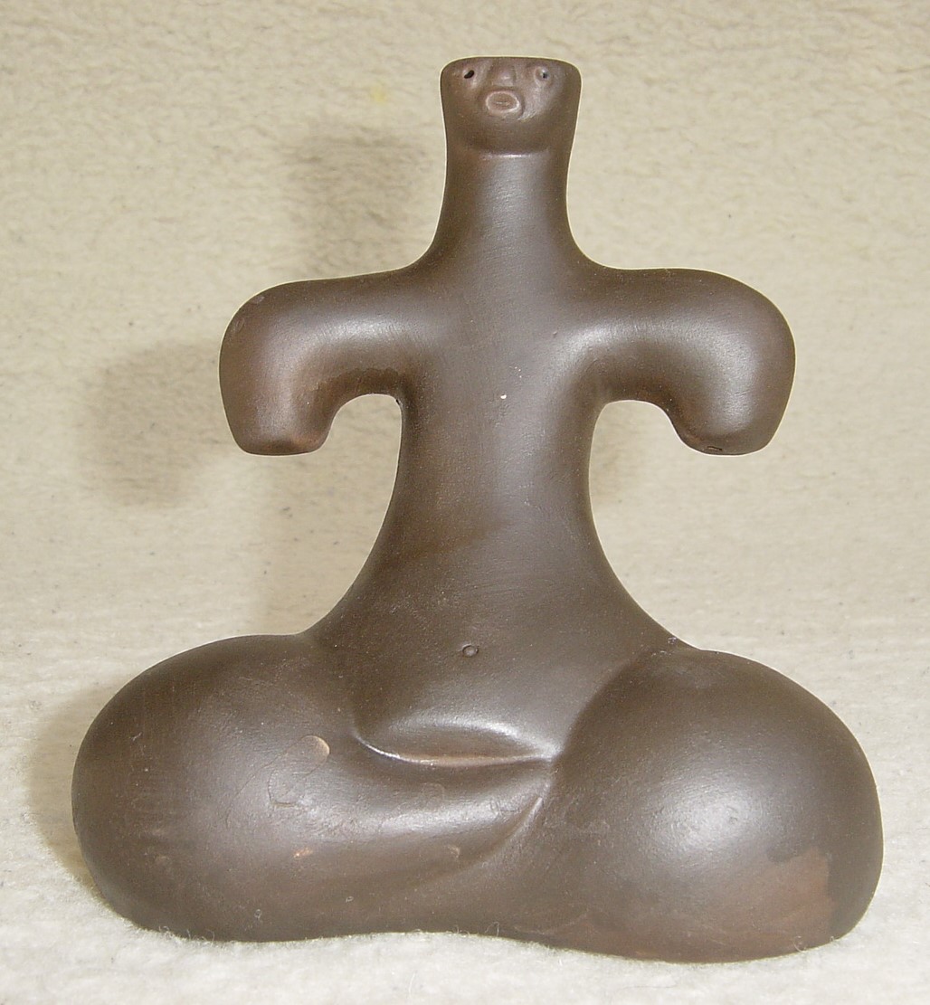 Erstes Foto oben: Schamane mit der Jaguarkraft, Moche-Keramikgefäß, Peru (Foto: N. Nauwald) Zweites Foto: Prof. Felicitas Goodman in ihrer Kiva, New Mexico/USA. (Foto: N. Nauwald)